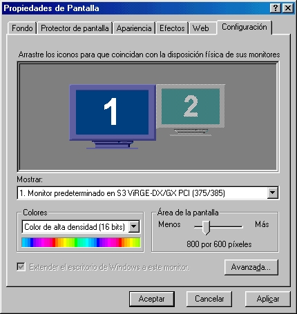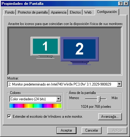 You then click on the number 2 screen, activate it, configure, and off you go. So forth for all others. Note that screens need not have the same resolution or color depth: