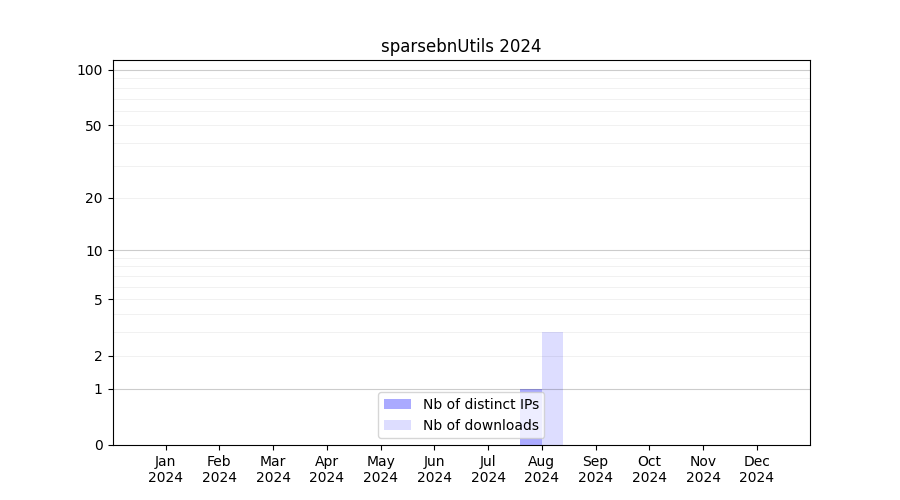 Number of downloads for software package sparsebnUtils, year by year, from 2025 back to 2014 (years with no downloads are omitted):