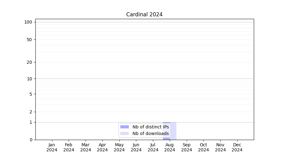 Number of downloads for annotation package Cardinal, year by year, from 2025 back to 2014 (years with no downloads are omitted):