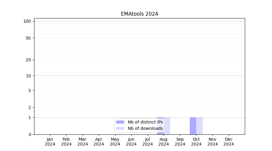 Number of downloads for annotation package EMAtools, year by year, from 2025 back to 2014 (years with no downloads are omitted):