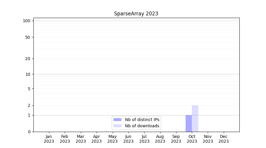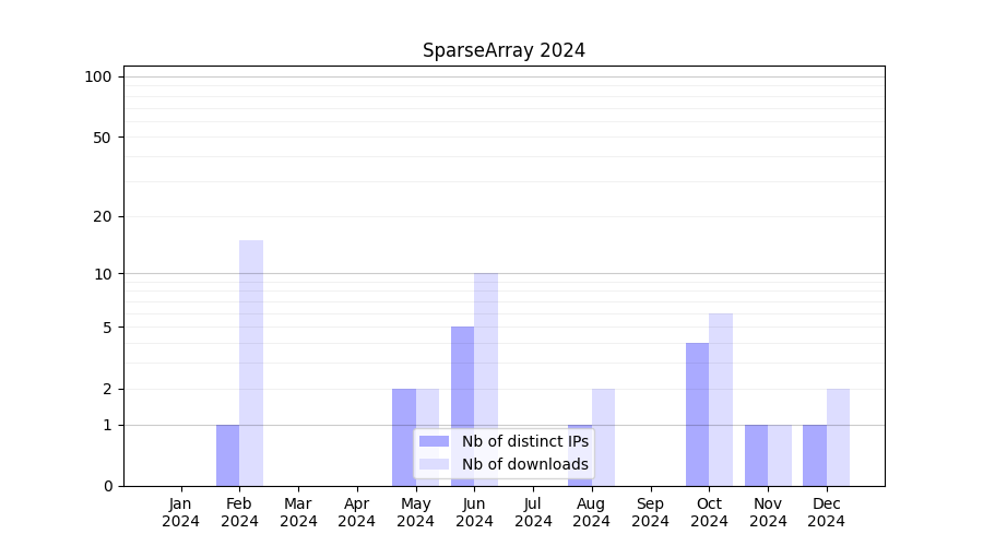 Number of downloads for annotation package SparseArray, year by year, from 2025 back to 2014 (years with no downloads are omitted):