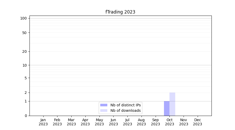 Number of downloads for annotation package fTrading, year by year, from 2025 back to 2014 (years with no downloads are omitted):