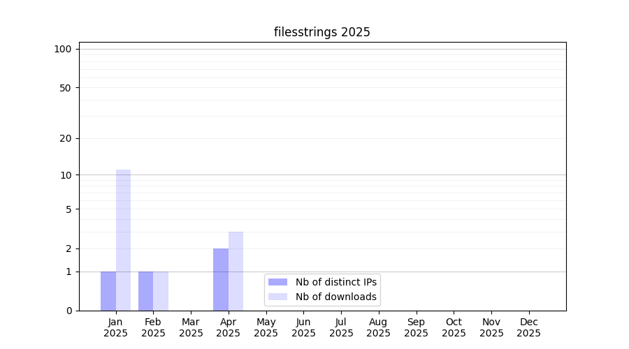 Number of downloads for annotation package filesstrings, year by year, from 2025 back to 2014 (years with no downloads are omitted):