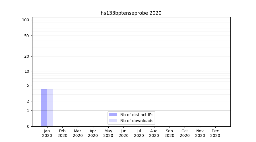 Number of downloads for annotation package hs133bptenseprobe, year by year, from 2025 back to 2014 (years with no downloads are omitted):