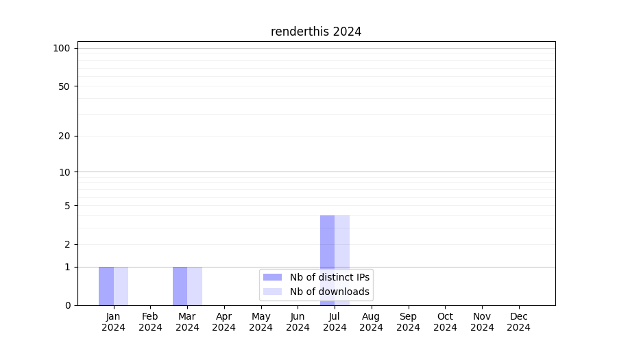 Number of downloads for workflow package renderthis, year by year, from 2025 back to 2015 (years with no downloads are omitted):
