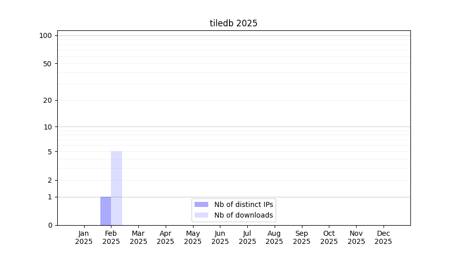 Number of downloads for workflow package tiledb, year by year, from 2025 back to 2015 (years with no downloads are omitted):